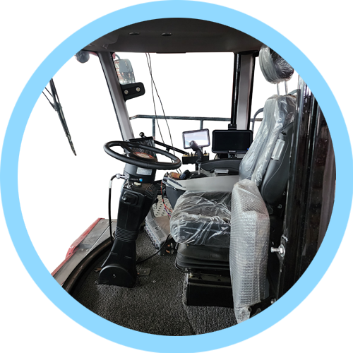 整車(chē)全部功能都可以在扶手箱電控按鍵進(jìn)行操作。 增壓駕駛室寬敞明亮,保護(hù)駕駛員安全。配備豪華氣動(dòng)懸浮座椅,副駕駛位。 智能車(chē)載系統(tǒng)可以清晰顯示油溫水溫轉(zhuǎn)速等基本信息并且搭配進(jìn)口智能?chē)婌F系統(tǒng)。