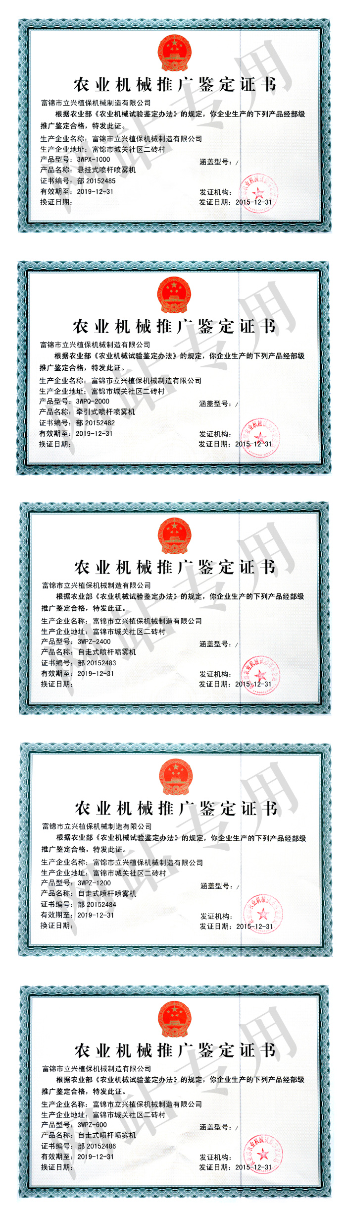 農(nóng)業(yè)機(jī)械推廣鑒定證書